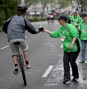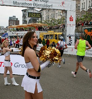 schließlich zum attraktiven Zieleinlauf am Rheinufer. Nach Angaben der Stadt säumten 400.000 Zuschauer die Strecke, Teilnehmer berichteten allerdings auch von recht einsamen Streckenabschnitten. Durch die vielen Schleifen konnten Betreuer und Zuschauer bis zu sechsmal an die Strecke kommen und anfeuern, mag sein, dass hier manche Fans doppelt und dreifach gezählt wurden. |